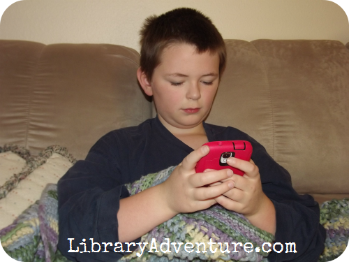 So, for a change of pace I had him use the free Kindle App on my phone to read the library’s digital download version of it so that we could have the book now instead of waiting for the book request to process weeks later. He actually started reading it that day, on the way home from the library.